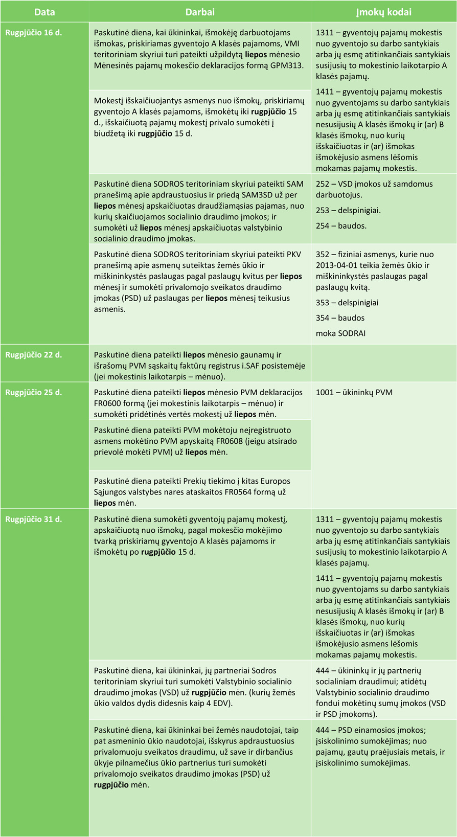 Rugpjūčio mėnesio darbai tvarkantiems ūkio apskaitą