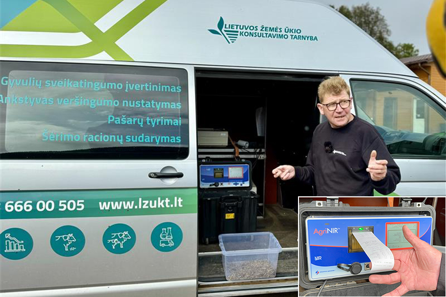 Lietuvos žemės ūkio konsultavimo tarnybos mobili gyvulininkystės laboratorija suteikia galimybę tyrimus atlikti tiesiog ūkyje – greitai, patogiai ir be papildomo logistikos vargo. Atvykę specialistai per kelias minutes nustato pagrindinius pašaro rodiklius – žalių baltymų, ląstelienos, sausųjų medžiagų, pelenų, cukrų, krakmolo, riebalų bei energijos kiekį.