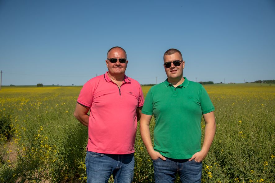 LŽŪKT Kėdainių r. biuro klienas Dainius Venckus su sūnumi Linu. Venckų ūkis įregistruotas 1998 m., tačiau veikla vykdoma ir dar anksčiau – šiemet švenčiamas 30 metų jubiliejus. Venckų šeima bendrai valdo apie 1500 ha.