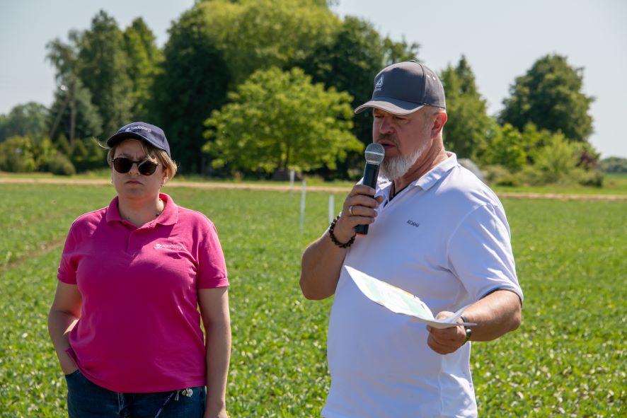 Žieminių rapsų, pupų, vasarinių ir žieminių kviečių laukuose naudotų produktų technines charakteristikas bei bandyme taikytų technologijų galimybes apžvelgė ir ūkiškais patarimais dalijosi Jūratė Ruminienė, „Tradecorp“ produktų konsultantė, ir dr. Remigijus Peleckis, „Adama“ produktų plėtros vadovas Baltijos šalims.
