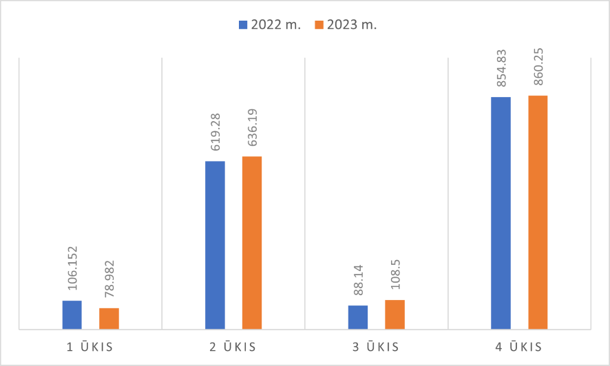 Analizuodami 2022–2023 m. skolos rodiklį, matome, kad 2023 m. net 10 ūkių rodiklis didėjo, 5 ūkių mažėjo ir tik 3 ūkiai liko finansiškai stabilūs, skolų neturėjo. Todėl galima teigti, kad 2023 m. ūkininkai daugiau skolinosi ir sunkiai vykdė savo įsipareigojimus.