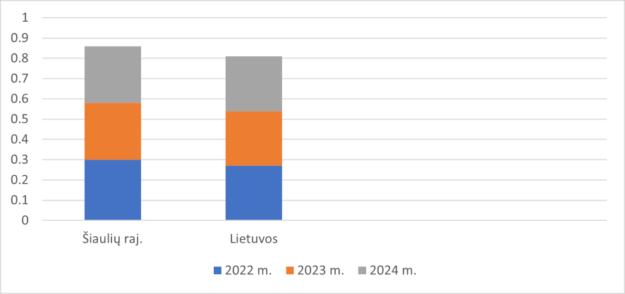 Analizuojant 2022– 2024 m. duomenis, matyti, kad tiek Šiaulių r., tiek Lietuvos mastu ūkių pelningumas kito nevienodai, tačiau bendra tendencija rodo tam tikrą atsigavimą 2024 m. Šiaulių r. 2022 m. pelningumas buvo teigiamas, o tai reiškia, kad veikla buvo pelninga. 2023 m. jis šiek tiek sumažėjo, o 2024 m. vėl padidėjo, kas rodo, kad ūkinė veikla stabilizavosi, efektyviau buvo panaudoti ištekliai.