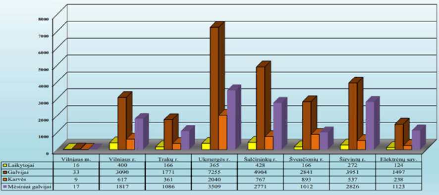 2 pav. Galvijų laikytojų, galvijų ir karvių skaičius Vilniaus apskrityje 2023 12 31