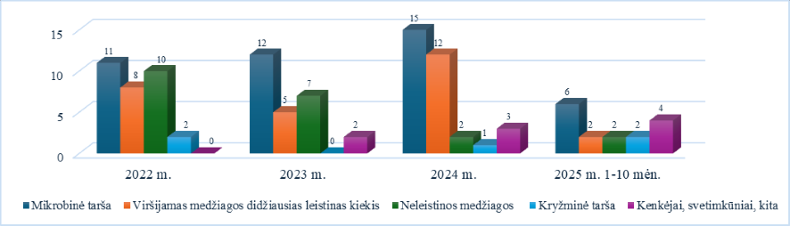 Pagal Skubių pranešimų apie maistą ir pašarus sistemos (RASFF) duomenis, Lietuvoje 2022 m. buvo registruotas 31 pranešimas dėl nesaugių pašarų, 2023 m. – 26, 2024 m. – 33, o 2025 m. per sausio – spalio mėn. nustatyta 16 atvejų.