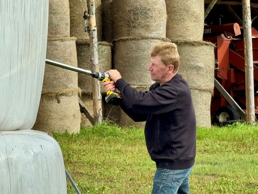 „Pašarų mėginiams imti naudojamas zondas. Jei pašaras gaminamas tranšėjose, zondas turi prailginimą. Svarbu mėginį paimti ne nuo rulono viršaus, nes toks tyrimas būtų tik iš vienos vietos ir neparodytų bendros kokybės. Kai mėginys imamas per visą rulono ilgį, apimant kelias vietas, tyrimo rezultatas būna tikslus. Gręžiant iš karto matosi suspaudimo lygis, žolės kokybė, jos išdžiūvimas, jau galima daryti atitinkamas išvadas“, – paaiškina Vidas Tolevičius.