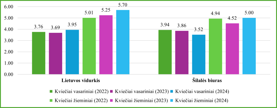 1 pav. Šilalės r. respondentinių ūkių javų derlingumas, t/ha