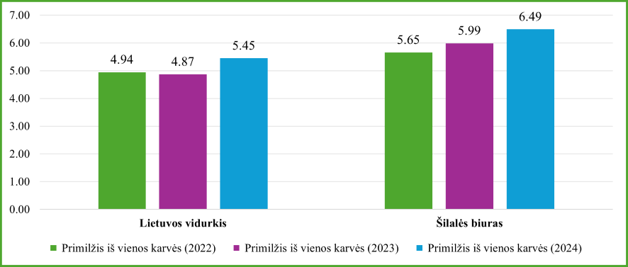 Išanalizavus Šilalės r. pienininkystės ūkius. matyt, kad trijų metų laikotarpiu primilžis iš vienos karvės auga. Lyginant 2022–2024 m., primilžis padidėjo apie 15 % ir Lietuvos vidurkį viršija 19 %. Primilžio didėjimą lėmė pieno ūkių investavimas į pašarų ruošimo ir šėrimo techniką. Ūkininkai domisi pašarų ruošimo kokybės gerinimu, išbando naujus produktus produktyvumui didinti. Taip pat pienininkystės ūkiai pradėjo investuoti ir į naujas melžimo ir šėrimo technologijas (melžimo ir šėrimo robotus).