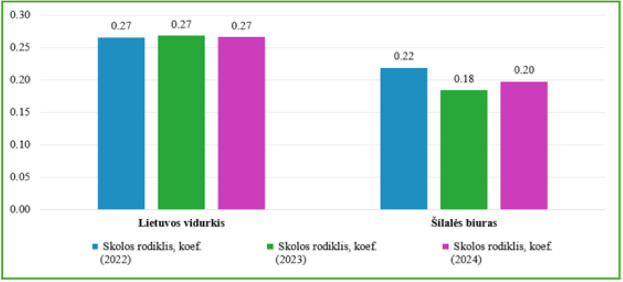 Skolos rodiklis – koeficientas, rodantis, kokia ūkio turto dalis finansuota iš skolintų lėšų. Visos ūkio skolos neturėtų sudaryti daugiau nei 60 proc. viso jo turto. Jei rodiklis viršijamas, ūkis negali pretenduoti į ES paramą ūkiui plėsti, kadangi yra laikomas rizikingu. Šilalės r. ūkininkai skolinasi saikingai. Jų skolos rodiklis kinta nežymiai ir yra mažesnis už Lietuvos vidurkį visu prognozuojamu laikotarpiu. Šilalės r. vidurkis vyruoja nuo 0,22 iki 0,20. Lietuvos vidurkis visais analizuojamais metais išliko toks pat, t. y. 0,27.