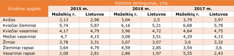 1 lentelė. Grūdinių augalų vidutinis derlingumas, t/ha