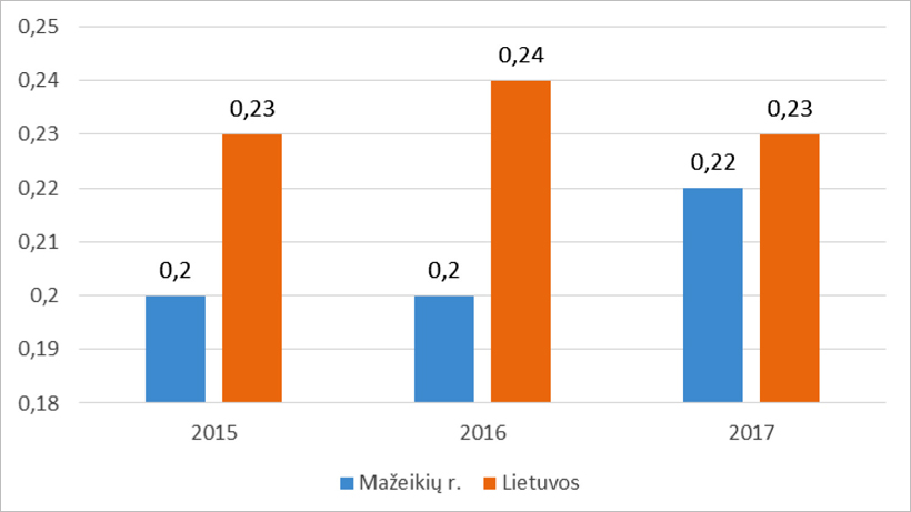 Analizuodami 4 pav. duomenis, matome, kad Mažeikių r. ūkininkai skolinasi atsakingai ir jų vidutinis skolos rodiklis mažesnis nei vidutinis Lietuvos respondentinių ūkių rodiklis.