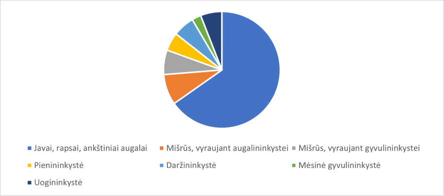 Panevėžio rajone didžiausią dalį užima augalininkystės ūkiai, kurie verčiasi javų, rapsų ir ankštinių augalų auginimu – 65 proc. Likusi dalis yra mišrūs ūkiai, vyraujant augalininkystei (8 proc.) arba gyvulininkystei (7 proc.). Pienininkystės sudaro 5 proc., daržininkystės – 6 proc., uogininkystės – 6 proc., o mažiausią dalį sudaro mėsinės gyvulininkystės ūkiai, apie 3 procentus.