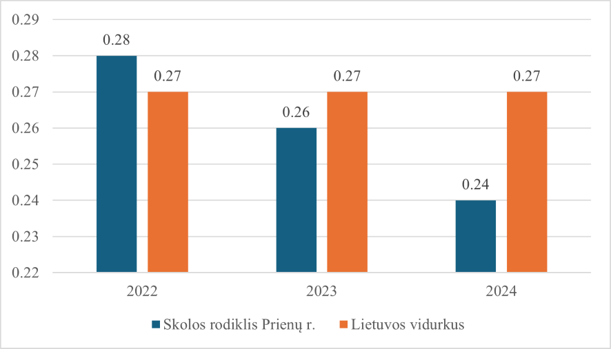 Dar vienas svarbus finansinis rodiklis – skolos rodiklis, kuris rodo bendrą ūkio įsiskolinimo lygį, kokia dalis skolintų lėšų panaudojama formuojant ūkio turtą. Prienų r. respondentiniuose ūkiuose šis rodiklis nuo 2022 m. kasmet nuosekliai mažėjo ir nuo 2023 m. buvo mažesnis už Lietuvos vidurkį. 2024 m. skolos koeficientas vidutiniškai siekė 0,24, 2022 m. – 0,28, 2023 m. – 0,26. Tai rodo, kad ūkininkai atsakingai vertina įsipareigojimus, mažina skolų naštą ir didina finansinį savarankiškumą.