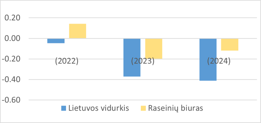 2 pav. Grynojo pelningumo rodiklis be dotacijų, susijusių su pajamomis