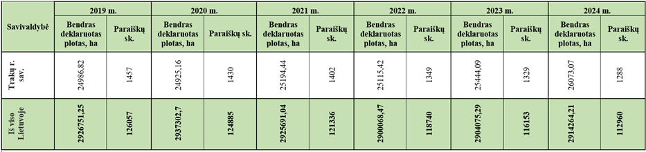 1 lentelė. Bendro deklaruoto ploto, paraiškų skaičiaus palyginimas