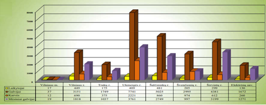 2 pav. Galvijų laikytojų, galvijų ir karvių skaičius Vilniaus apskrityje 2023 12 31