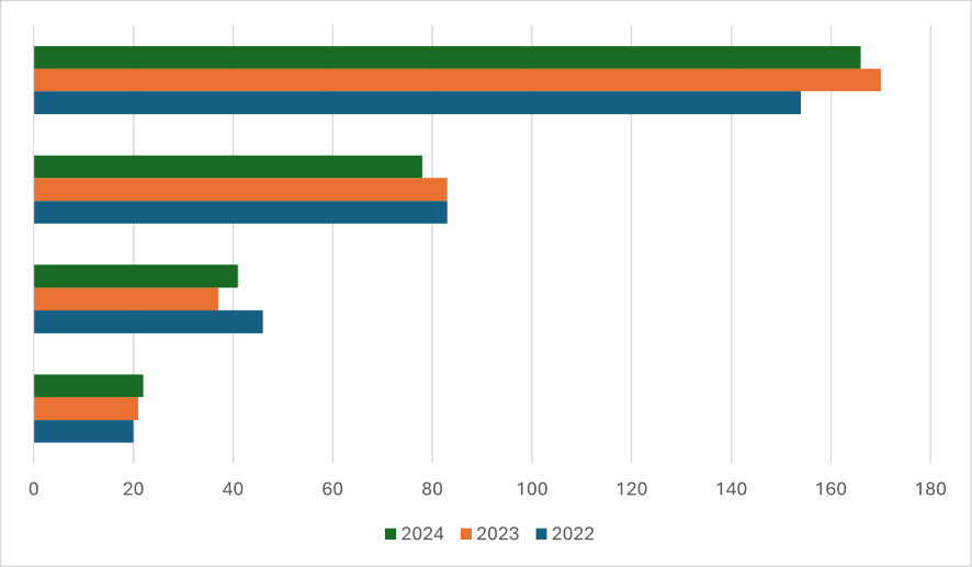 Ignalinos r. respondentinių pienininkystės ūkių duomenys rodo gana stabilią bandų struktūrą. Vidutinis melžiamų karvių skaičius 2022–2024 m. laikotarpiu išliko panašus: 2022 m. – 76,75 karvės, 2023 m. – 77,75 karvės, o 2024 m. – 75,75 karvės. Tai rodo, kad bandų dydžiai per pastaruosius trejus metus reikšmingai nekito. Iš apklaustų ūkių mažiausias pieno ūkis 2024 m. laikė 21 melžiamą karvę, o didžiausias – 170 karvių (3 pav.).