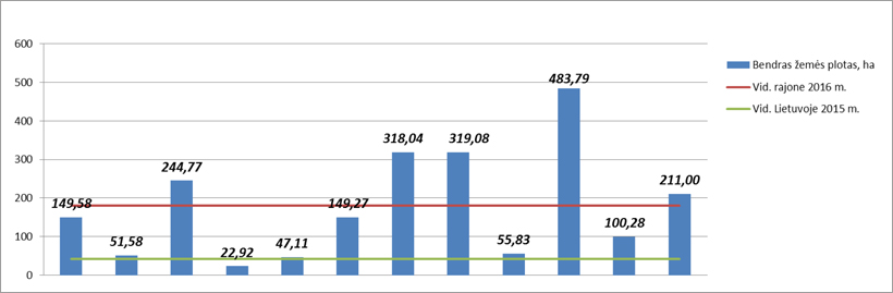 2016 m. vidutinis respondentinio ūkio dydis rajone buvo 179,44 ha, t. y. 4,23 karto didesnis negu šalies respondentinių ūkių vidurkis, kuris 2015 m. buvo 42,40 hektaro. Mažiausias dirbamas žemės plotas tarp respondentinių ūkių 2016 m. buvo 22,92 ha, didžiausias – 483,79 hektaro. Tai rodo, kad vis daugiau dėmesio skiriama smulkiesiems ūkiams.
