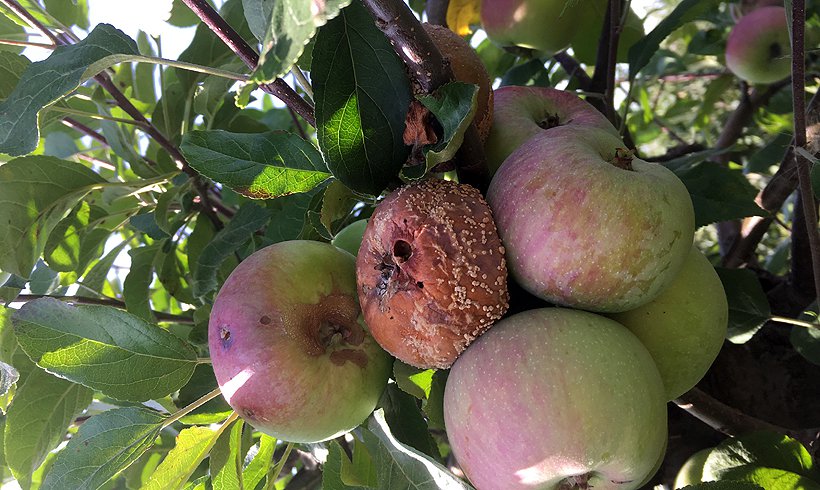 Žieminių veislių obelis rugpjūčio mėnesį būtina purkšti nuo rauplių ir vaisių puvinių sandėlyje, atsižvelgiant į karencijos terminus.